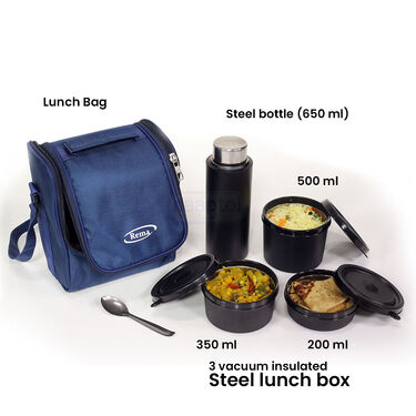 3 lunch Box With Stainless Steel Coloured Bottle And Bag (3LBB)