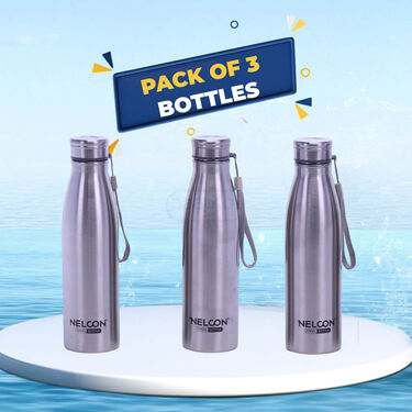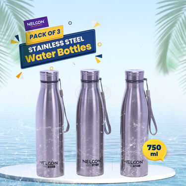 The Pack of 3 Stainless Steel Water Bottles (750ml Each) from NELCON is made from high-quality, food-safe, BPA-free stainless steel, ensuring durability and long-term use. The rust-free material keeps the bottles hygienic and easy to clean, making them ideal for storing water, beverages like chaas, lassi, or lemon juice. With a compact and sturdy design, these bottles are portable and perfect for home, office, school, or car use. Say goodbye to plastic bottles and enjoy the safety and health benefits of stainless steel.